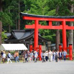 Erst am dritten Tag besuchen wir die zwei Haupttempel in Hiraizumi, beide Weltkulturerbe: zuerst den Chuson-ji, einst ein großes Kloster. Er ist 1337 bei einem Großbrand Opfer der Flammen geworden, mit einer Ausnahme, der Goldenen Halle (Konjiki-do). Heute ist sie hinter Panzerglas zu besichtigen, um das wiederum eine schützende Betonhülle gebaut wurde. Das nimmt ihm ein bisschen von seinem Charme, aber wenn man davorsteht, vergisst man das schnell. Die Gegend sieht ein bisschen aus wie der Schwarzwald in Deutschland, nur dass es im Schwarzwald keine Tempel und Schreine gibt und auch keine japanischen Restaurants.