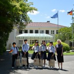 カロリンさんから香ばしい香りのドイツパンの説明を受けて新緑の大使公邸のお庭を見学。