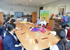 今回の訪問はドイツを訪れたことがあるという生徒さんの発案みたいで、ドイツと縁のある徳島から来たということでみなさんからは色々な質問が。