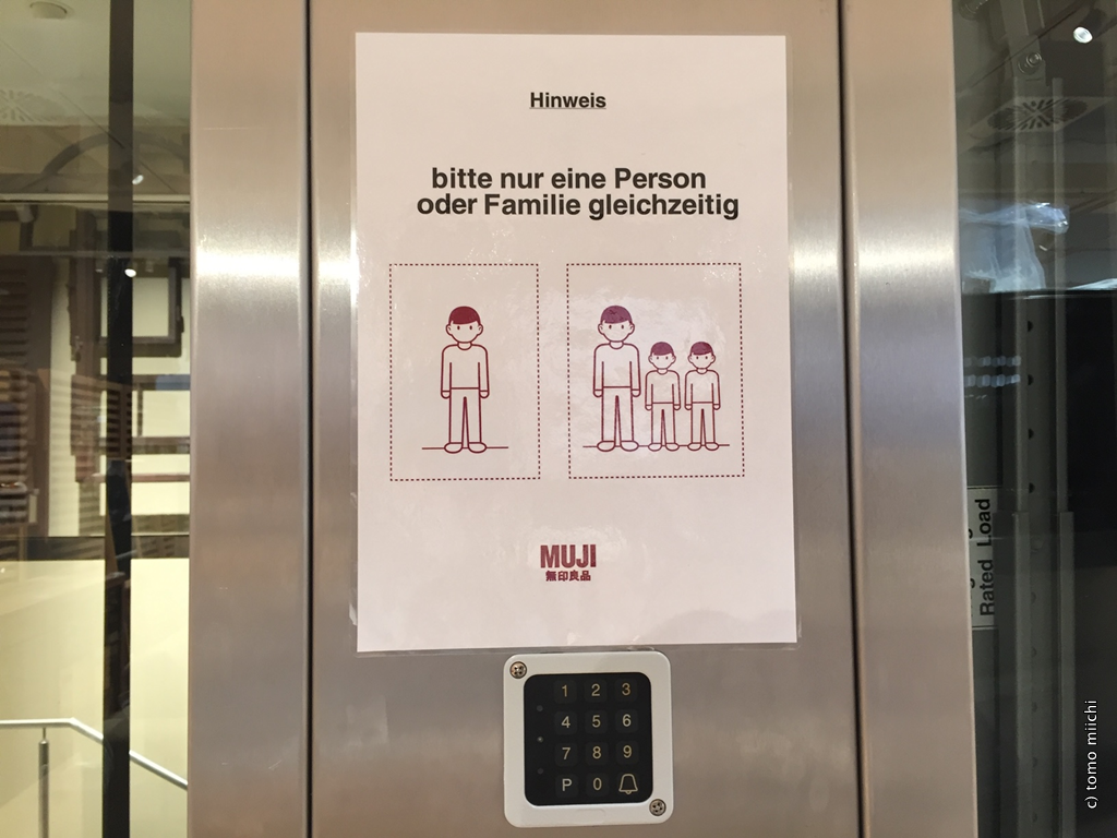 今回のベルリン行きの目的は、新しくクーダムにオープンするMUJI(無印良品)旗艦店のお手伝いでした。同旗艦店のオープンはもともと5月に予定されていたところ、コロナ禍で1カ月延期され、コロナ対策のための入店制限やマスク着用義務があることなどから、新店オープンのための宣伝も控えたとのこと。しかしそのわりには、まずまずの客入りだったようです。
