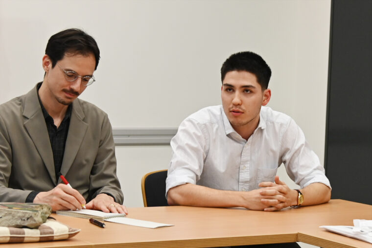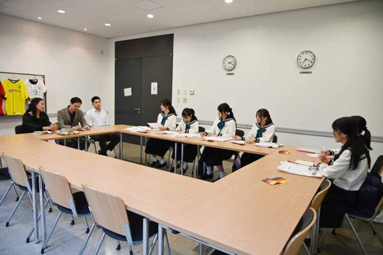 大使館で働くために必要なスキルや、日本とドイツの学校の違いなど、素敵な発音の英語で質問。
