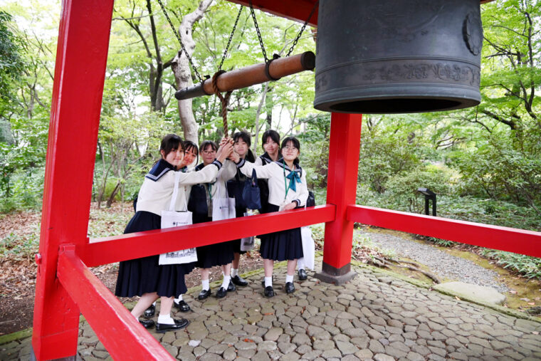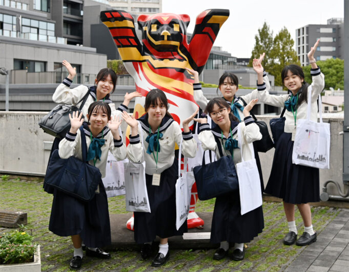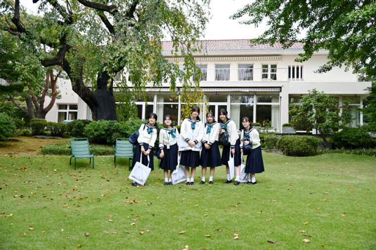 東京女学館中学校のみなさんが来館、リンダさんとヴィンシャーマンさん、そして研修生のアランさんがお迎えしたんだ。