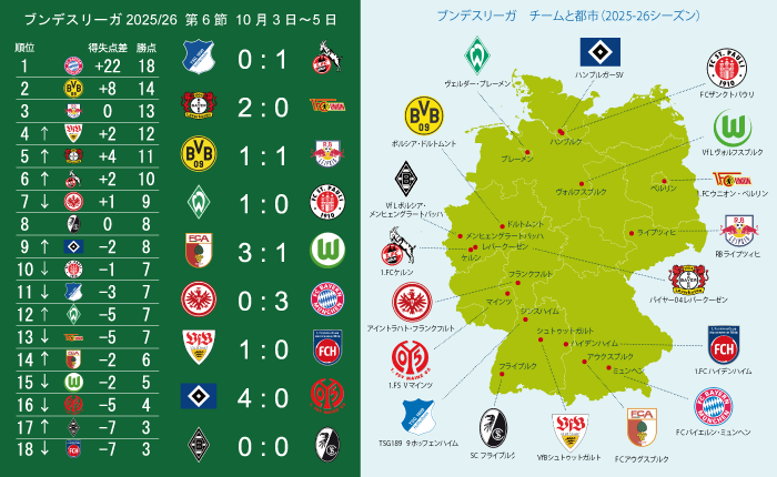 ちなみに今節ヴォルフスブルクがエッセン相手に0対8で勝利して1位に躍り出たニャ=^_^=