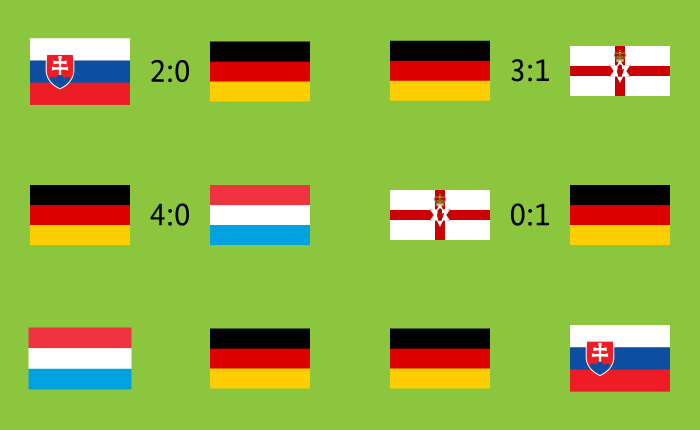 4試合を終えスロヴァキア代表と3勝1敗の勝ち点9で並び得失点差でドイツ代表が首位に♪