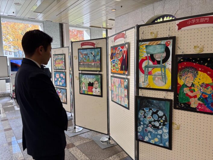 大阪・関西万博のドイツパビリオンのタイトルとコラボしたので、11月11日から13日までは、大阪市役所市民ロビーで受賞作品を含む50点の作品が特別に展示されたんだ♪