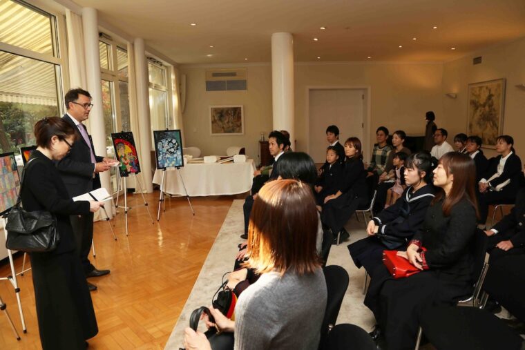 フッベ広報課長や大使館職員も若きアーティストと談笑したり写真撮影に応じたり📷