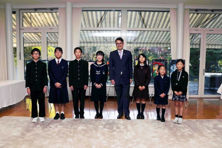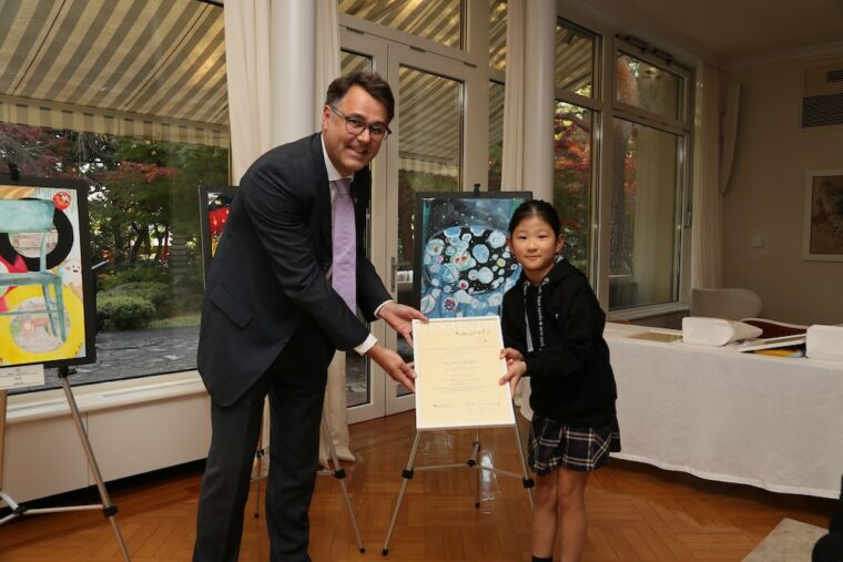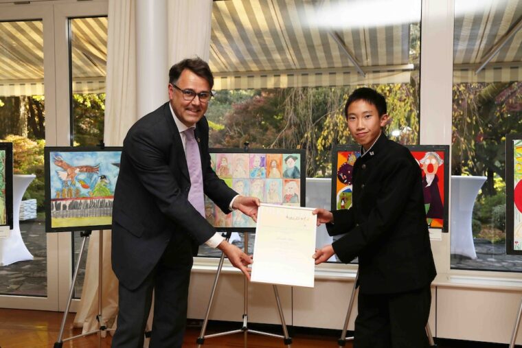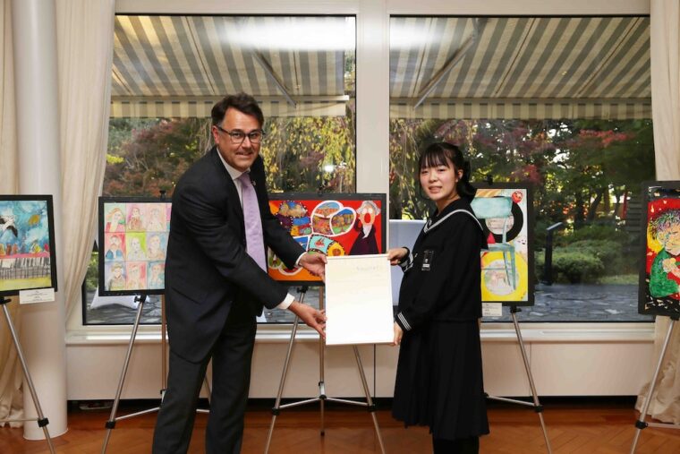 今年はフッベさんが大使に代わって表彰状を授与、作品ひとつひとつに丁寧にコメントしたんだ。