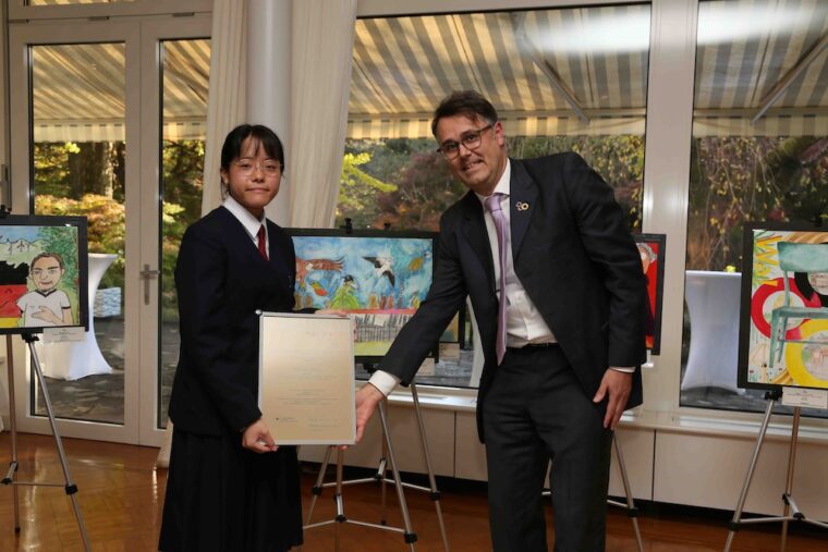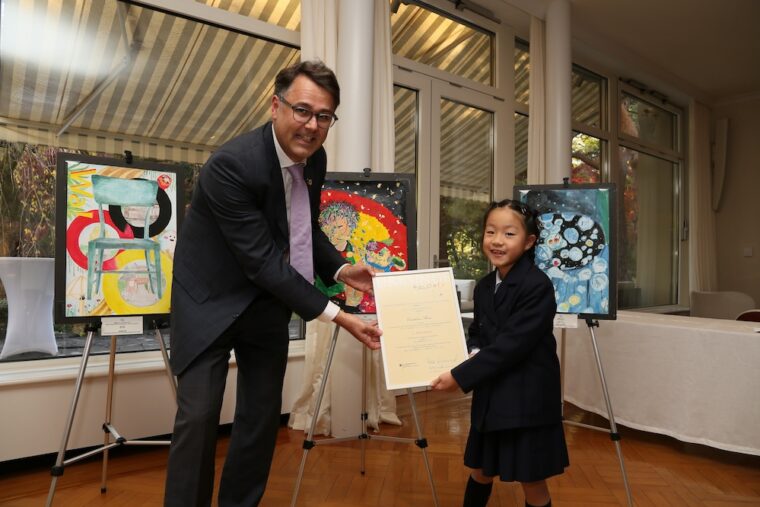 11月24日は勤労感謝の日の振替休日で日本はお休みだけど、ドイツ大使館と総領事館は元気に カ イ カ ン ♡ ということで絵画コンテスト「わたしのドイツ」のオープンデーと表彰式が行われたんだ。