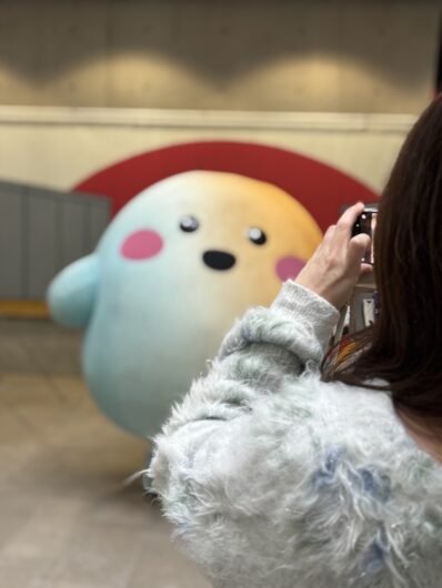 するとどこからともなくあの万博のドイツパビリオンの大人気キャラクターのサーキュラーちゃんがサプライズ登場。