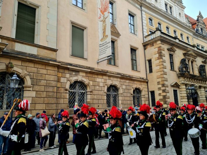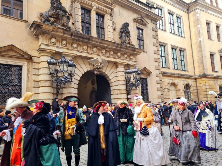 王宮や君主の行列、フラウエン教会など、歴史あるバロック様式建築物が立ち並ぶ、ふだんでもタイムスリップ感満載の旧市街を舞台に繰り広げられる、歴史絵巻のような大パレードは圧巻!