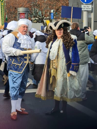巨大シュトレンを筆頭に、アウグスト強王と彼が巨大シュトレン作りを命じた宮廷パン職人ザカリアス、王に招かれた貴族や軍人などに扮した人々、ドイツで縁起が良いとされる煙突掃除人たち、パン職人チームなどが、マーチングバンドの演奏とともに旧市街を練り歩きます。