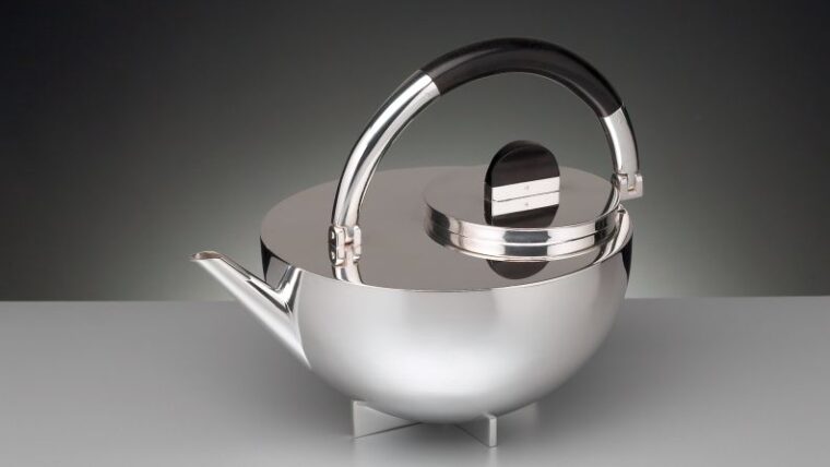完璧な真円の蓋を備えたこのティーポットは、バウハウスの金属工房で誕生しました。当時のオリジナルは世界にわずか9点しか現存しない、希少な銘品です。
