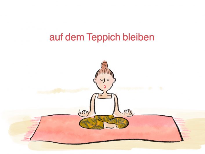 Teppichが「絨毯」、bleibenは「その場にいる、とどまる」ことを意味します。文の最初のauf demは「〜の上に」という意味なので、言葉通り訳すと「絨毯の上にとどまる」ということに。どんな意味だか分かりますか?